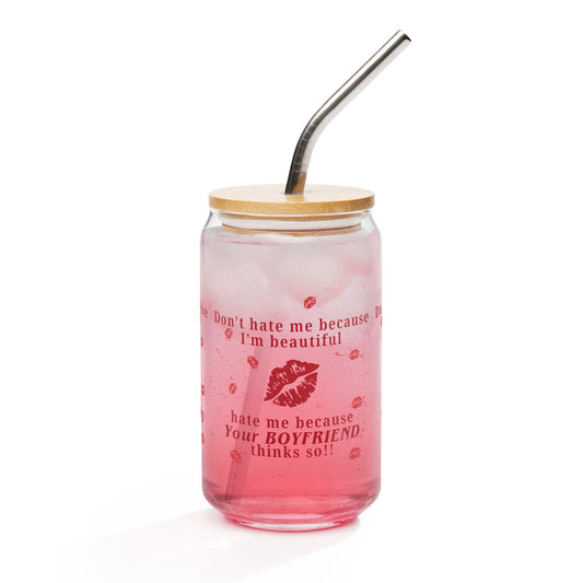 Don't Hate Me Because I'm Beautiful Hate Me Because Your Boyfriend Thinks So Kissy Lips Can-shaped Glass by EraofInk