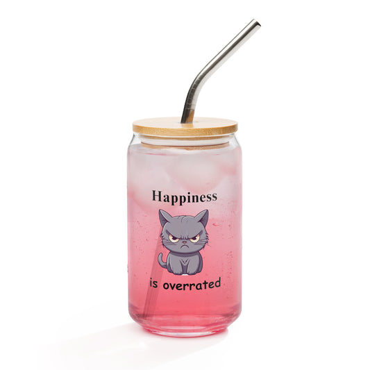 Happiness is Overrated Scowling Cat Humor Can-shaped Glass by EraofInk