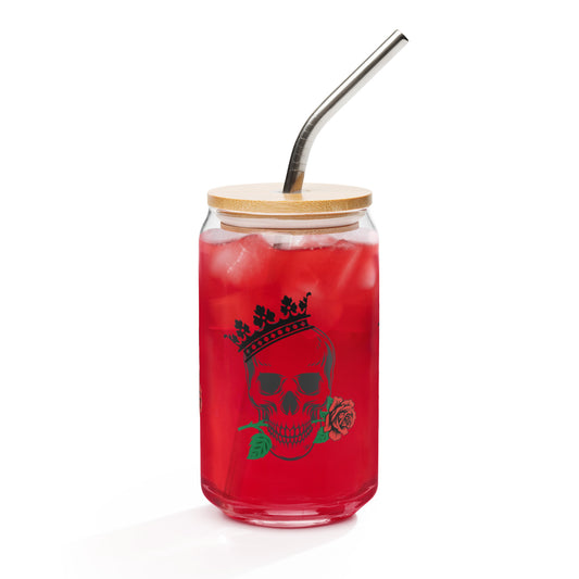 Crowned Skull with Rose in Mouth Can-shaped Glass by EraofInk