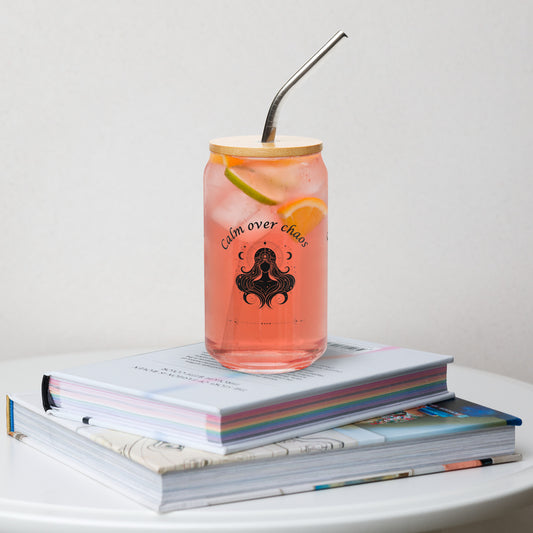 Calm Over Chaos Metaphysical Zen Yoga Meditation Theme Can-shaped Glass by EraofInk