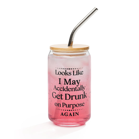 Looks Like I May Accidentally Get Drunk On Purpose Again Can Shaped Glass (incl. straw/lid) by EraofInk
