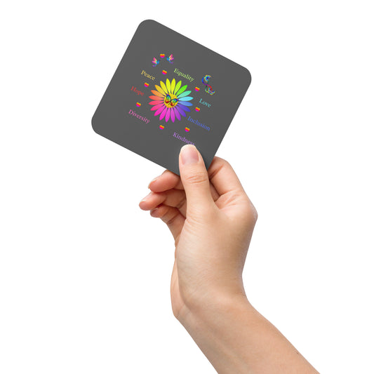 Equality LGBTQ+ Kindness Love Inclusivity Cork-back Coaster w- Grey Background by EraofInk