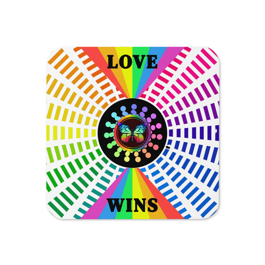 Love Wins Coaster LGBTQ+ LGBTQIA Equality Love for ALL Cork-back Coaster by EraofInk