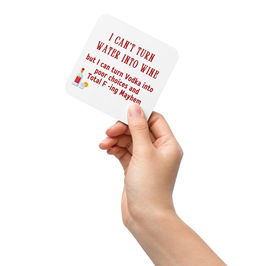 I Can't Turn Water Into Wine bu...Funny Drinking Quote Cork-back Coaster by EraofInk