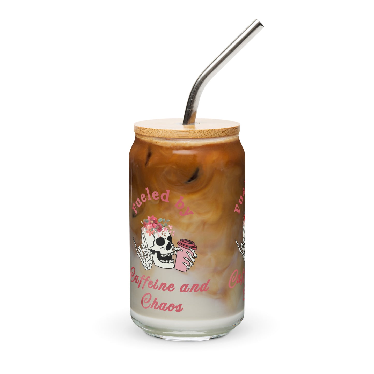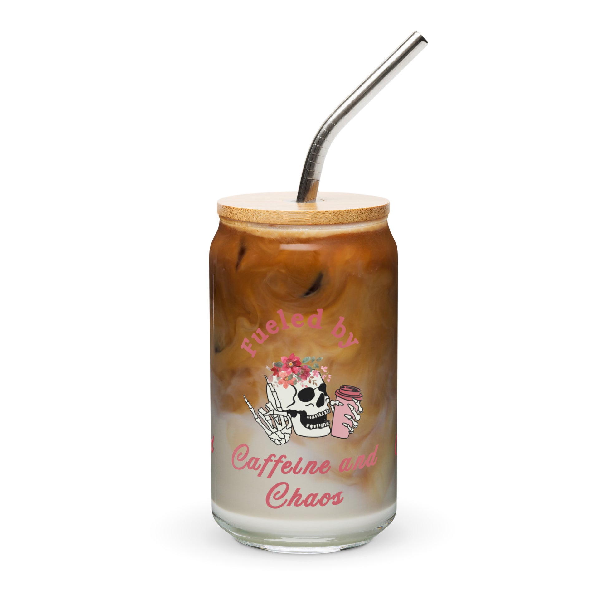 Fueled by Caffeine & Chaos Skull PSL Chai Tea Fans Can-shaped Glass by EraofInk