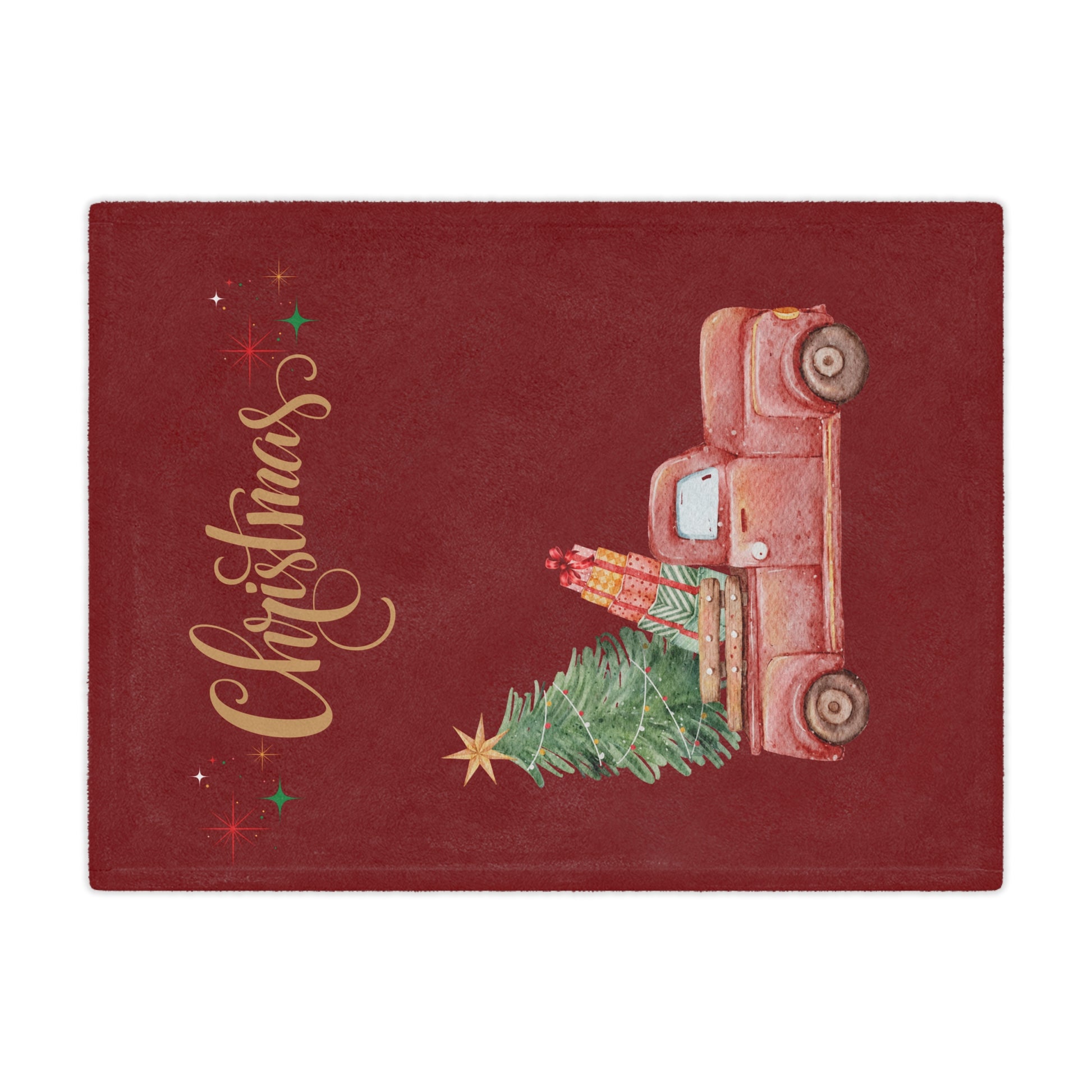 Wrap yourself in a cozy, festive moment with this plush minky blanket. A vintage red pickup hauls a freshly trimmed Christmas tree across a deep cranberry background, while elegant gold lettering spells out Christmas above—warm, nostalgic, and lightly whimsical. The soft, velvety surface invites quiet evenings by twinkling lights, holiday movie nights, or gentle naps on the couch. It layers easily over sofas or beds, bringing a handcrafted, cottage-holiday feel without fuss. The one-sided print keeps the artwork vivid and bright, while the durable sewn edge means it can be pulled out every December without losing its charm.