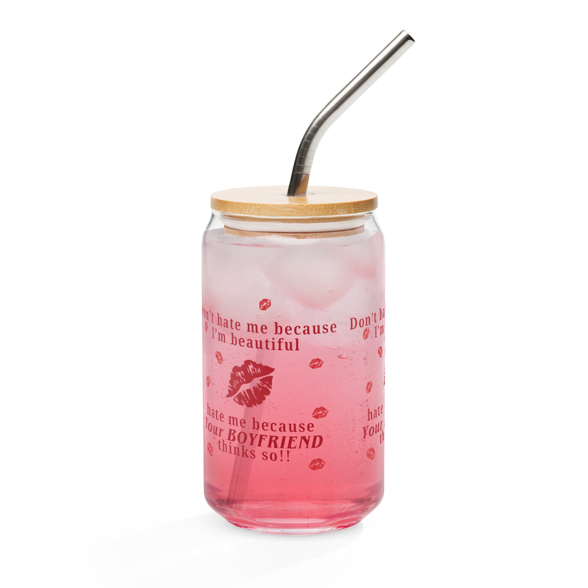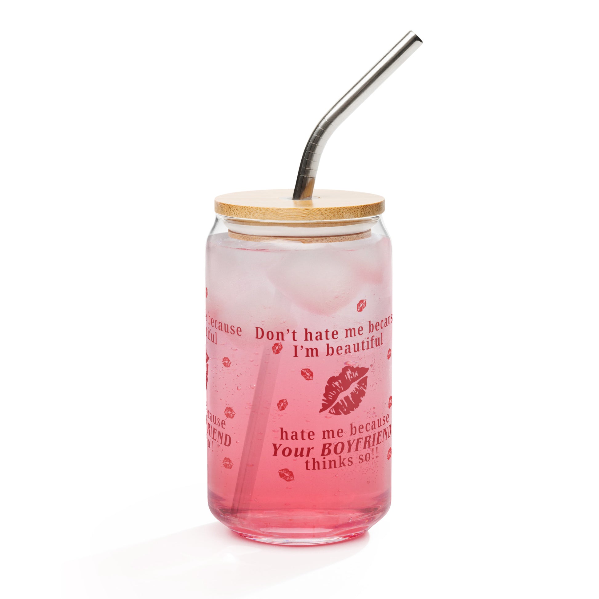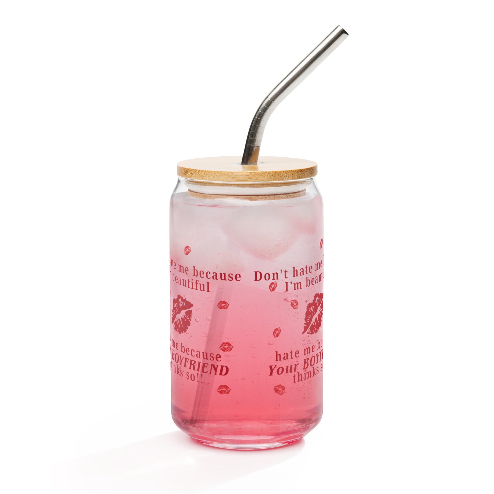 Don't Hate Me Because I'm Beautiful Hate Me Because Your Boyfriend Thinks So Kissy Lips Can-shaped Glass by EraofInk