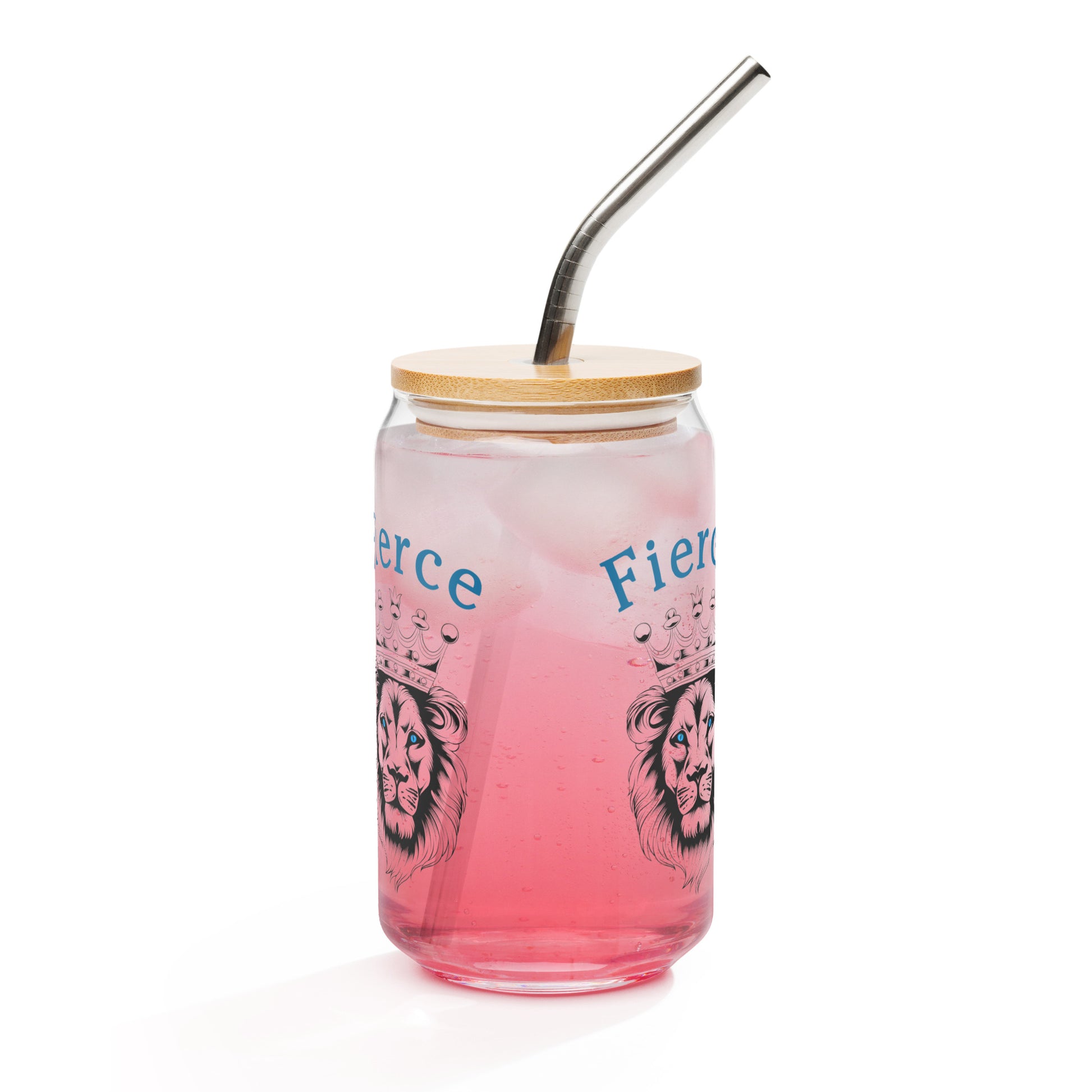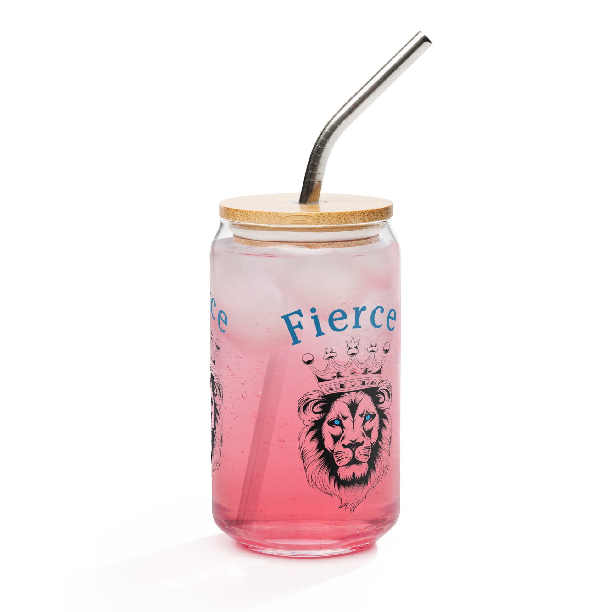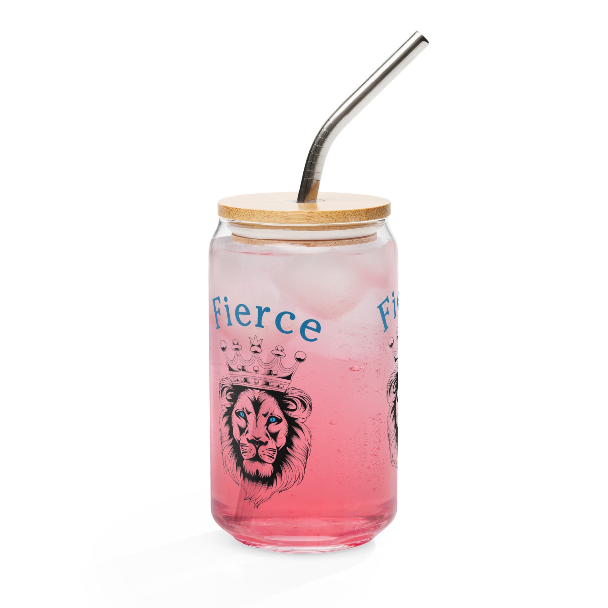 Fierce Blue Eyed Crowned Lion for Fierce Girls Only Can-shaped Glass by EraofInk