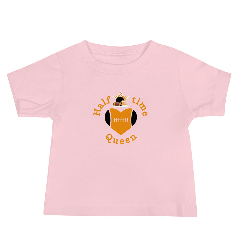 Halftime Queen Football Baby Jersey Tee Cheer for Orange & Black Team by EraofInk