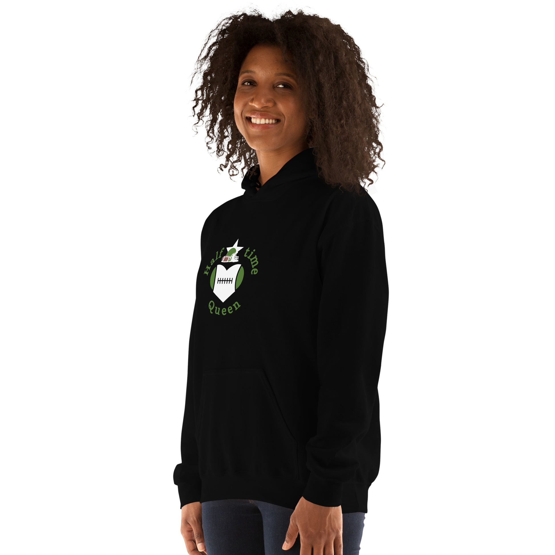 Halftime Queen Football Cheer for Green & White Unisex Hoodie by EraofInk