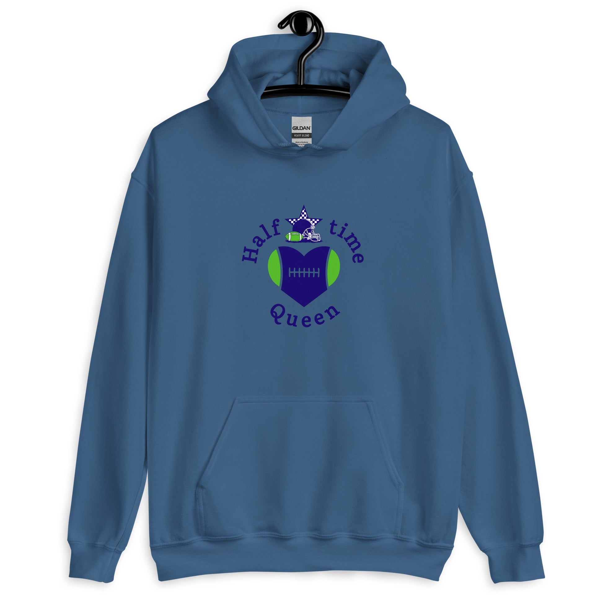 Halftime Queen Football Cheer for Purple & Green Unisex Hoodie by EraofInk