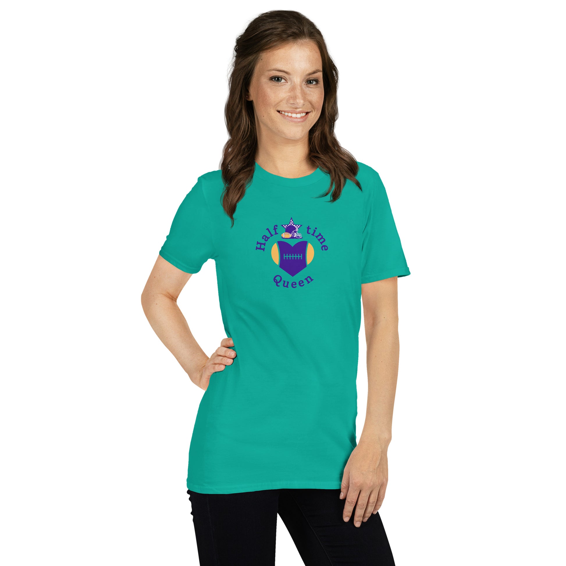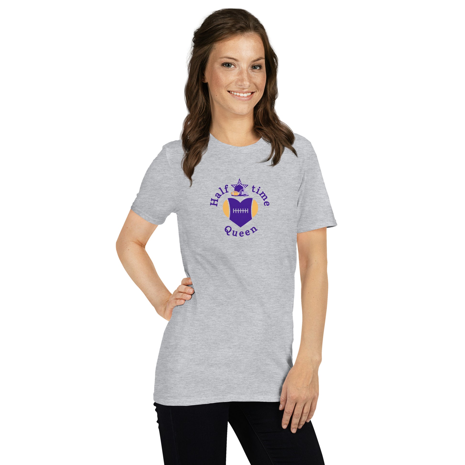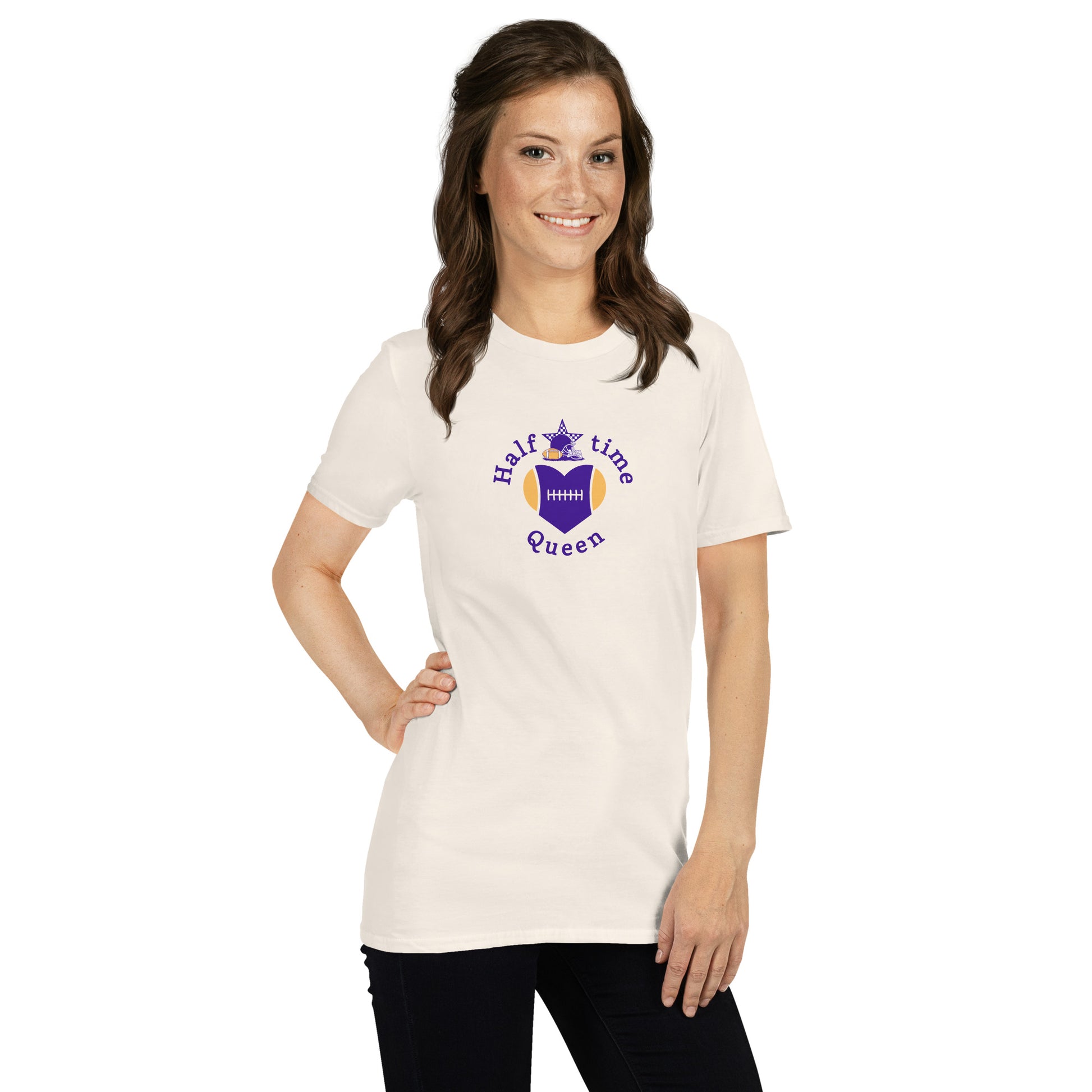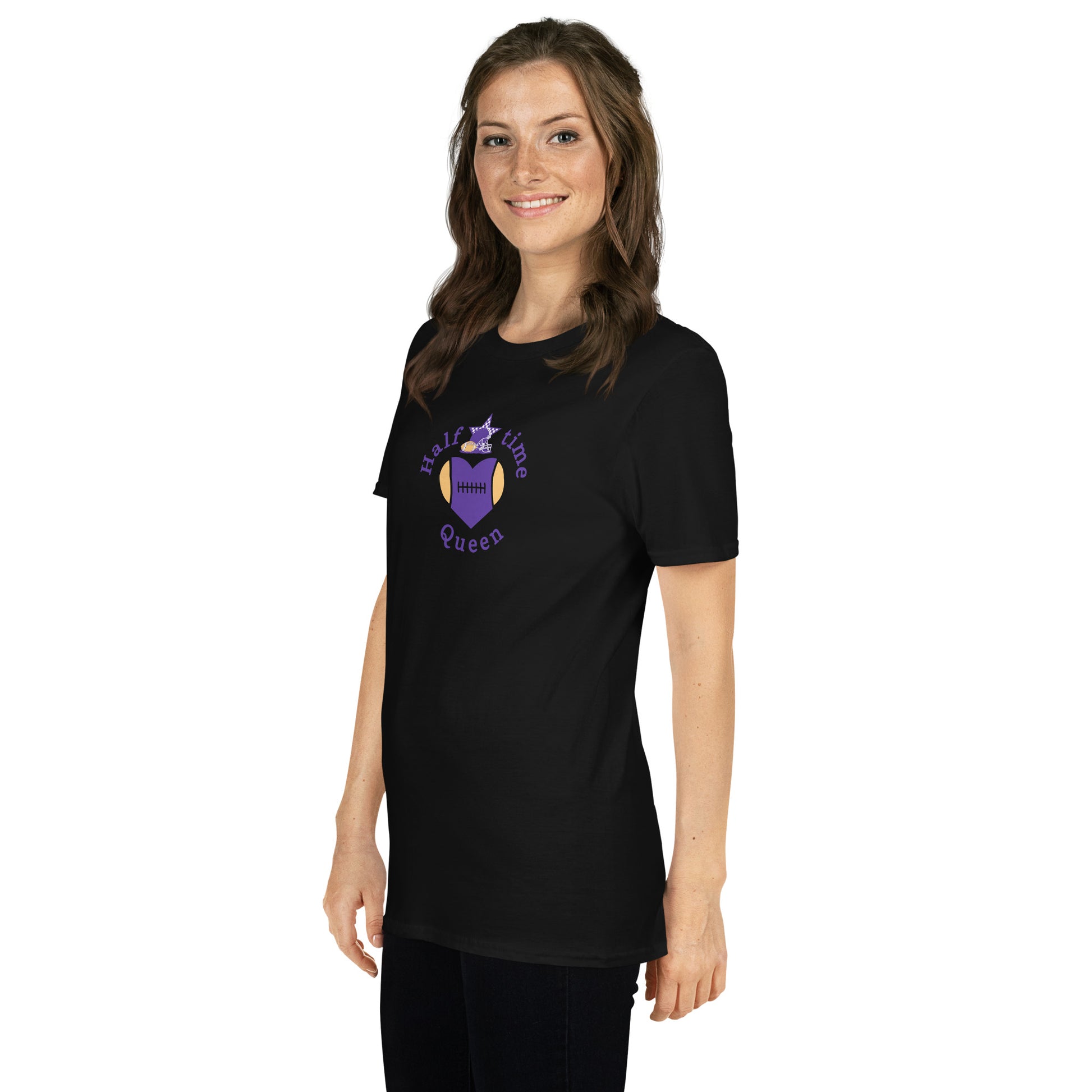 Halftime Queen Football Cheer for Purple & Yellow Unisex Tee by EraofInk