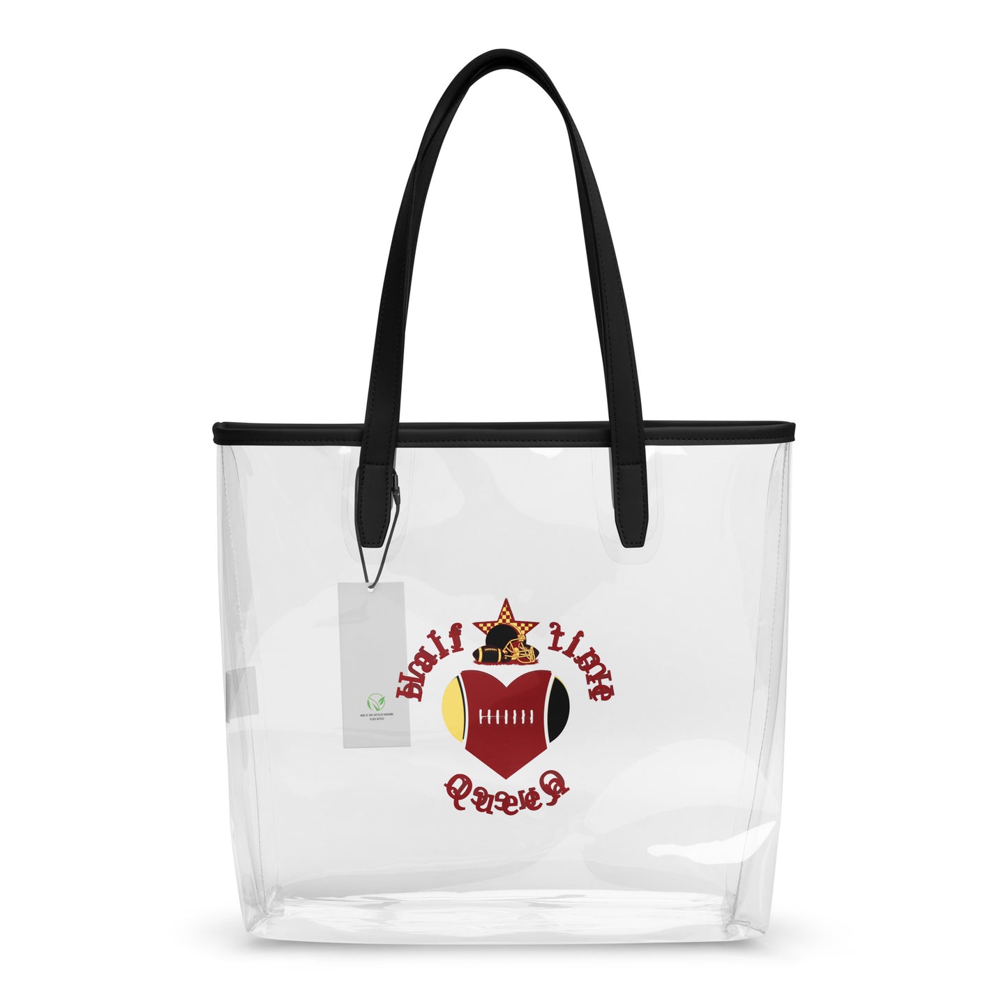 Halftime Queen Football Clear Stadium Approved Tote Bag Cheer for Scarlett Red & Gold Team by EraofInk