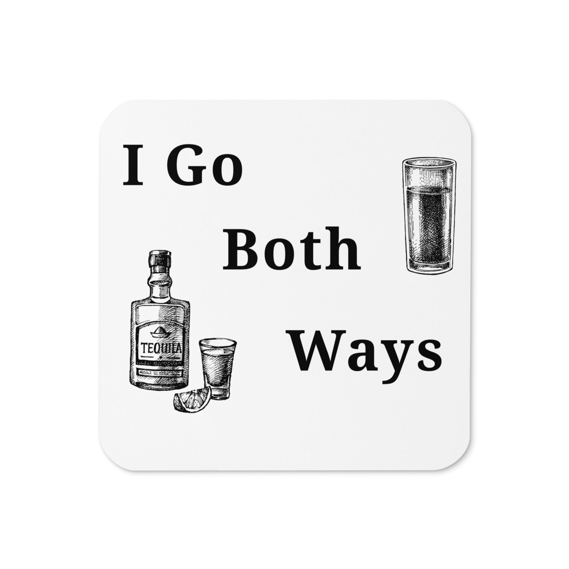 I Go Both Ways Alcohol Themed Quote Cork-back Coaster by EraofInk