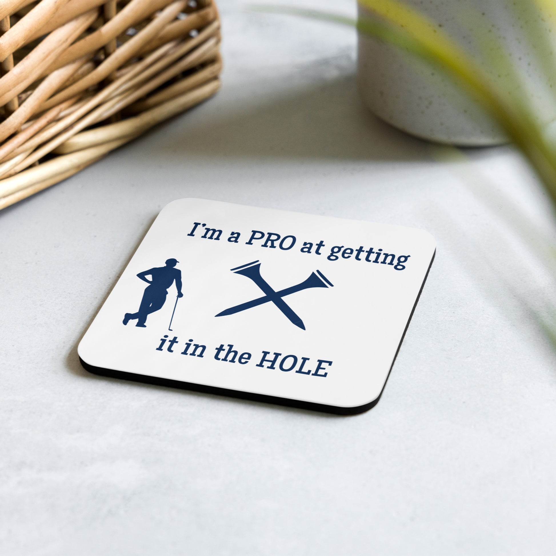 I'm a Pro at Getting in the Hole Golfer Coaster Funny Coaster for Golf Lover Cork-back by EraofInk