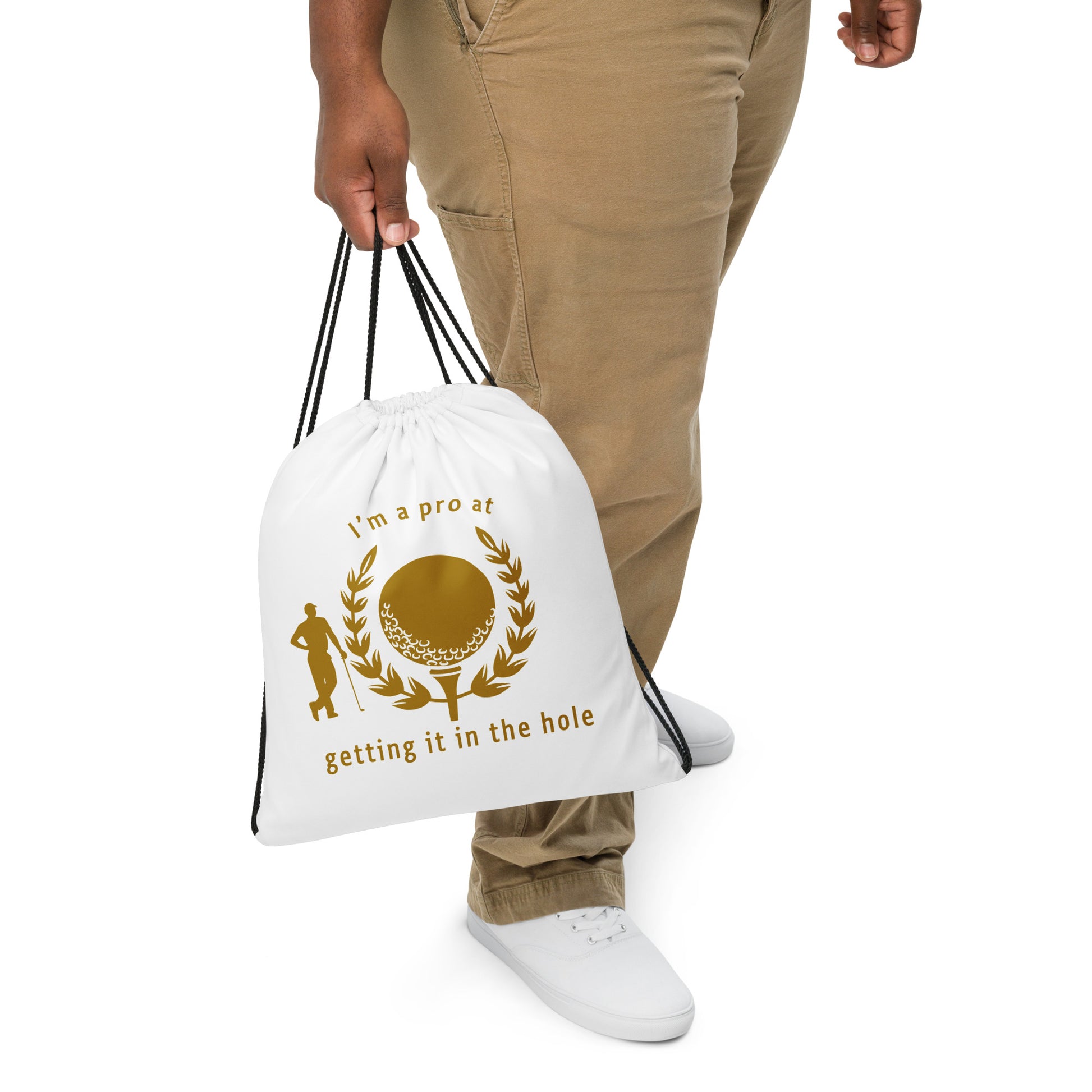 I'm a Pro at Getting it in the Hole Drawstring Bag by EraofInk