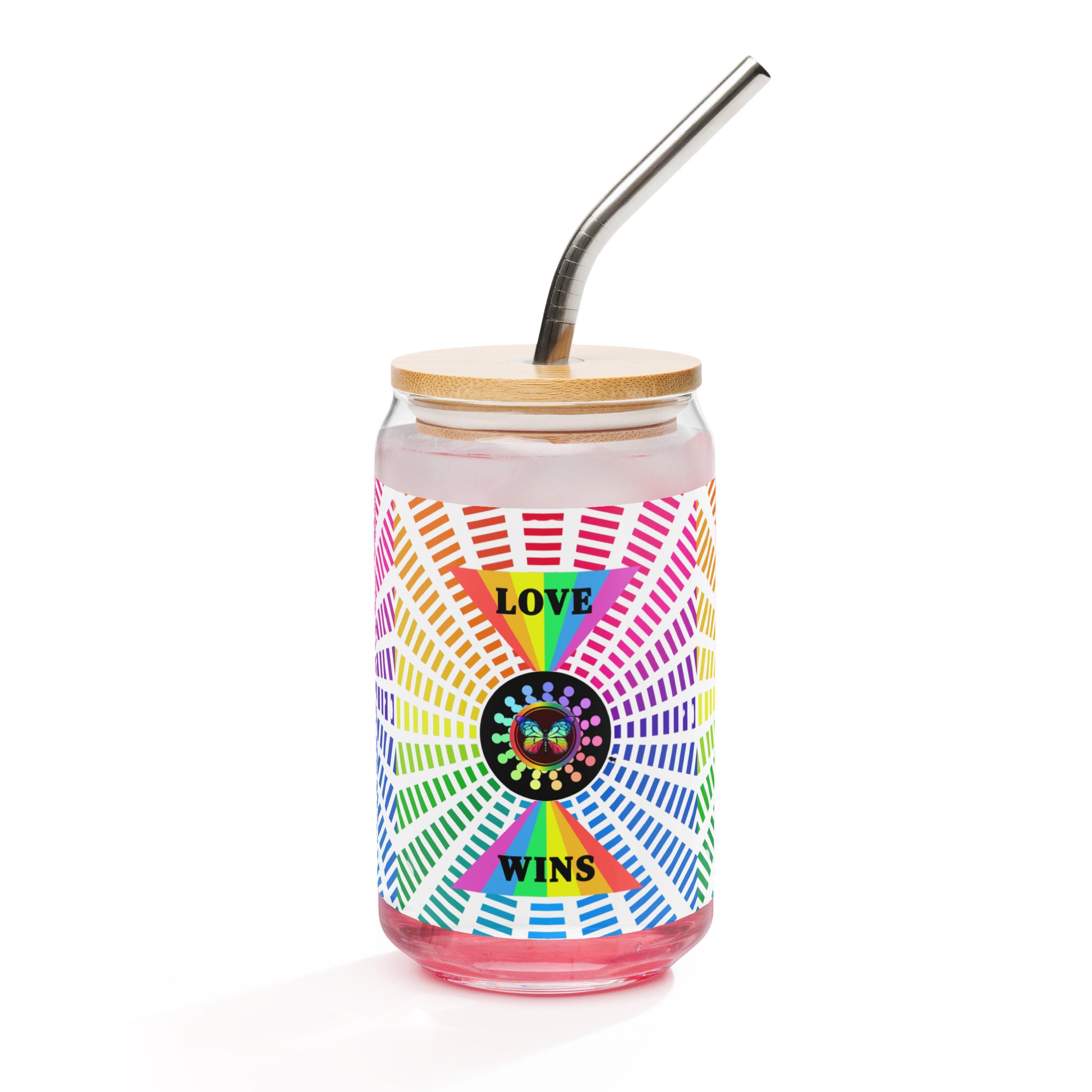 Love Wins Rainbow Bursting LGBTQ+ LGBTQIA Equality Can-shaped Glass by EraofInk