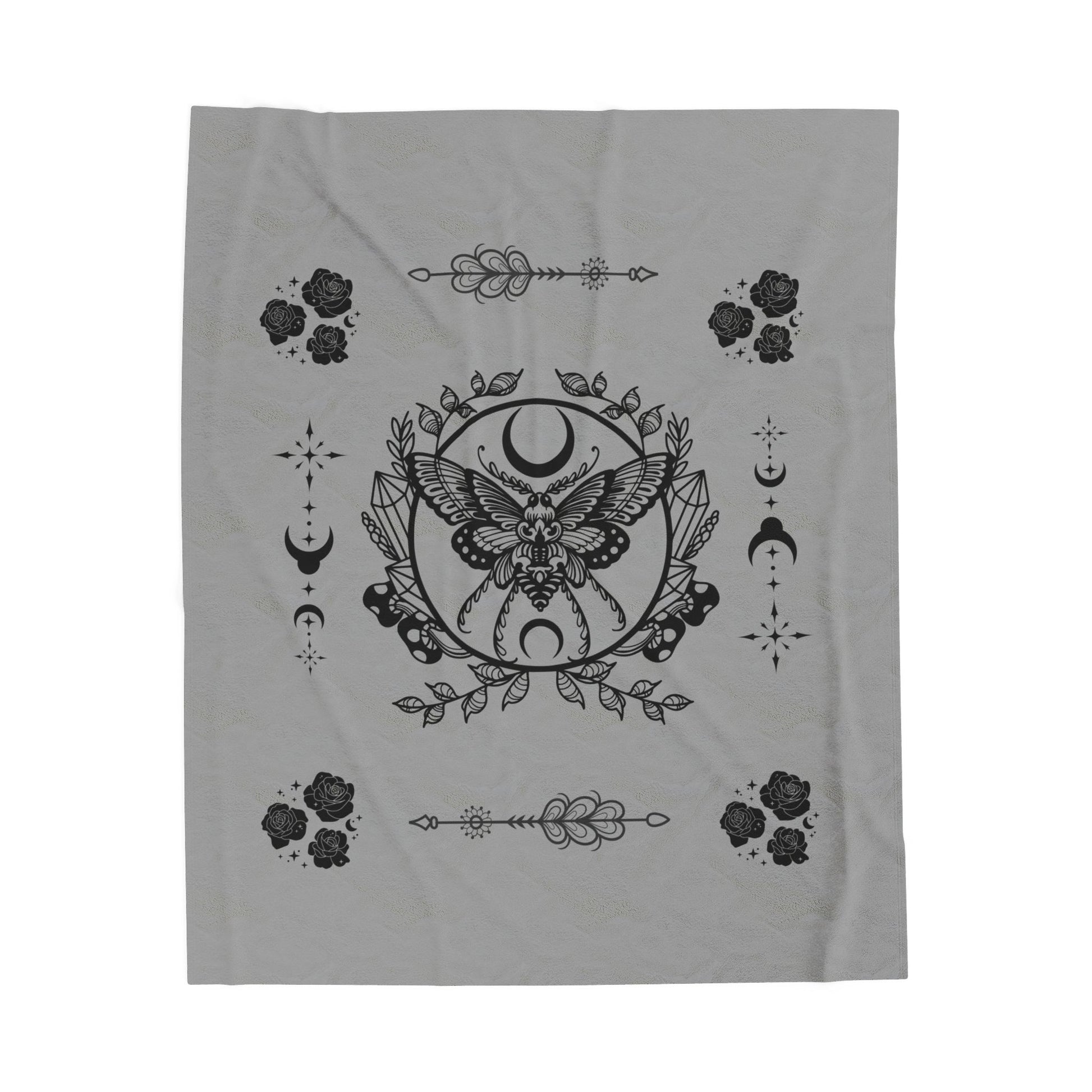 Mystic Moth Moon Velveteen Blanket Goth Style by EraofInk