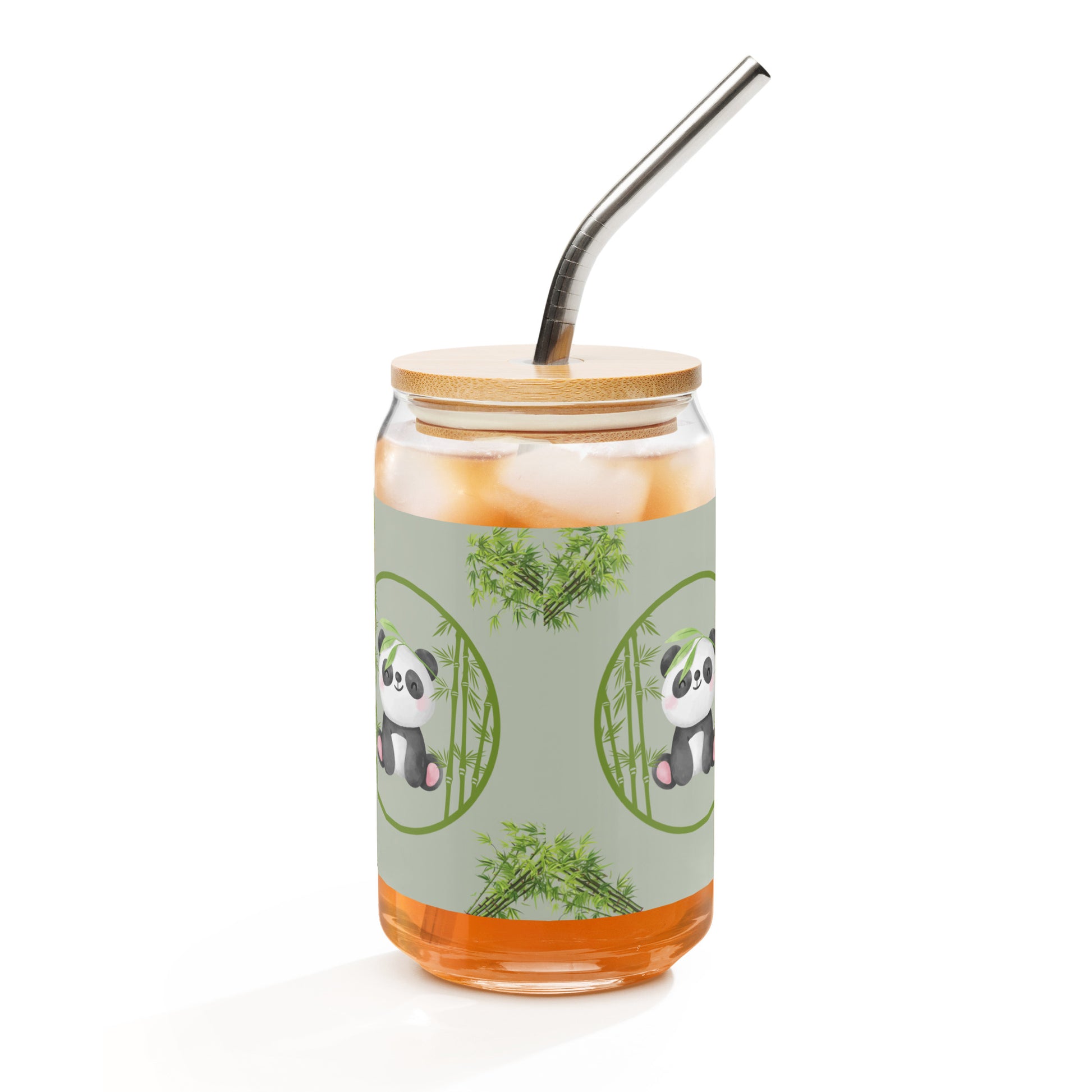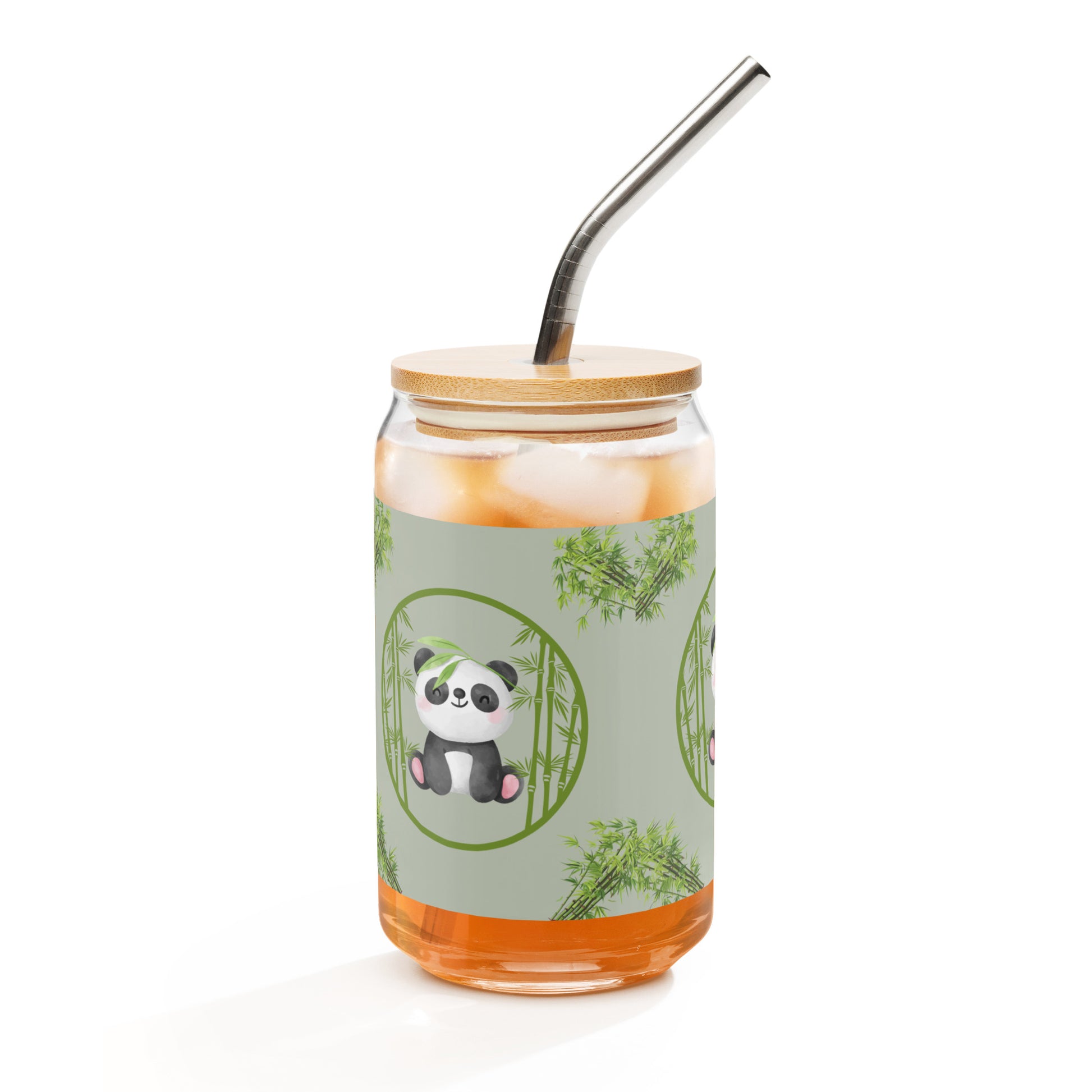 Panda Bear Bamboo Theme Can Shaped Glass with Straw & Lid by EraofInk