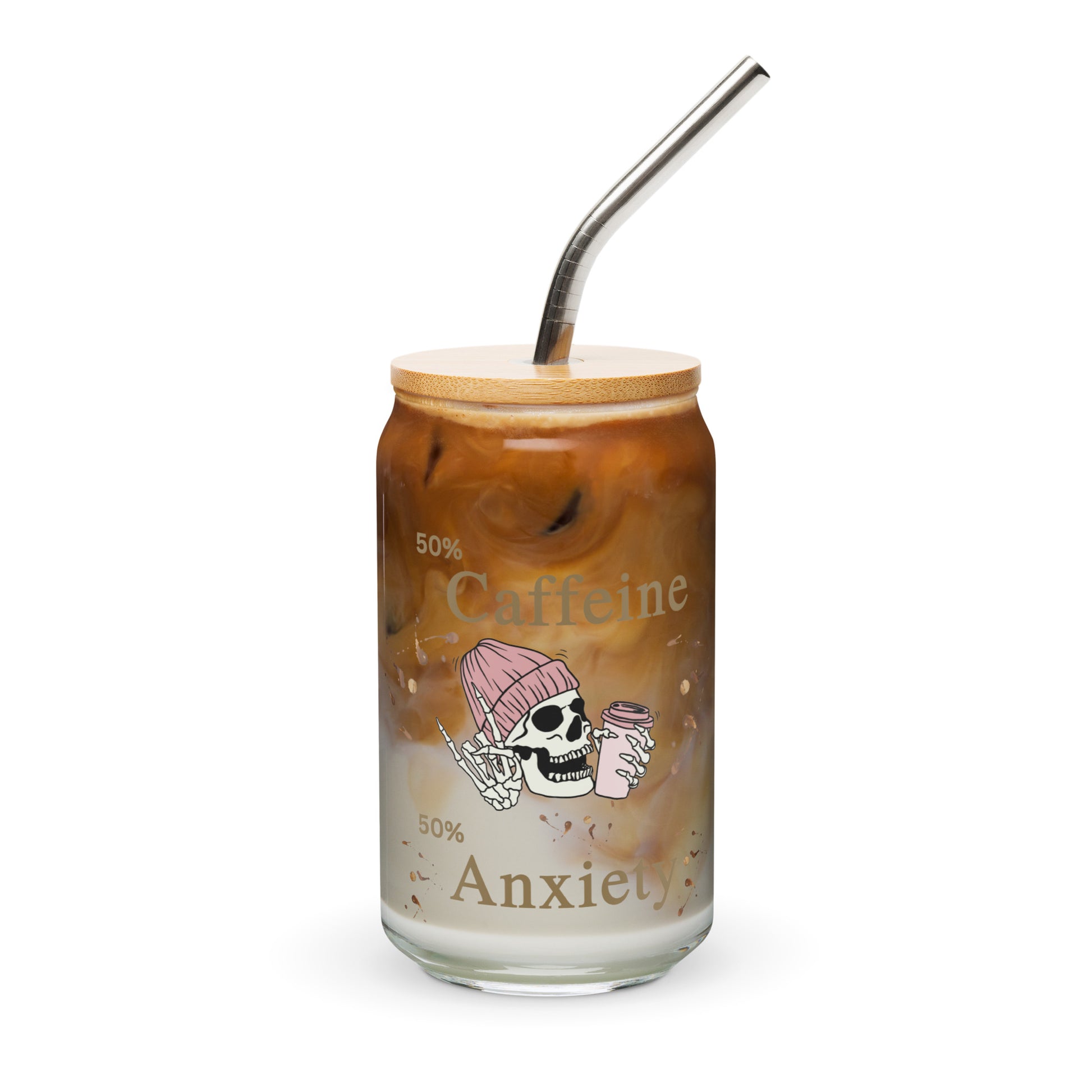50% Caffeine 50% Anxiety Skull Theme Latte Pumpkin Spice Latte Chai Tea Can-shaped Glass by EraofInk