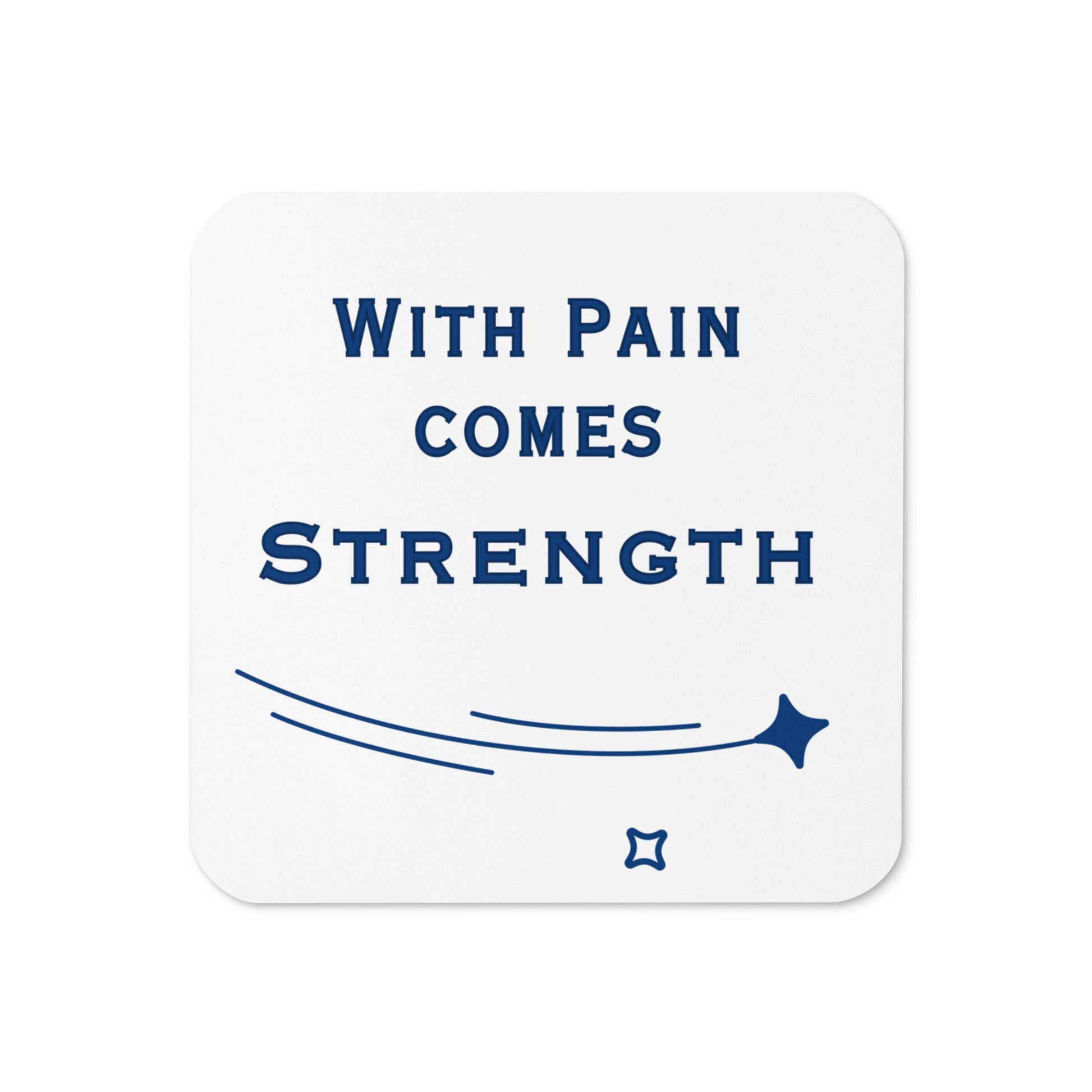 With Pain Comes Strength Motivational Inspirational Quote Cork-back Coaster by EraofInk